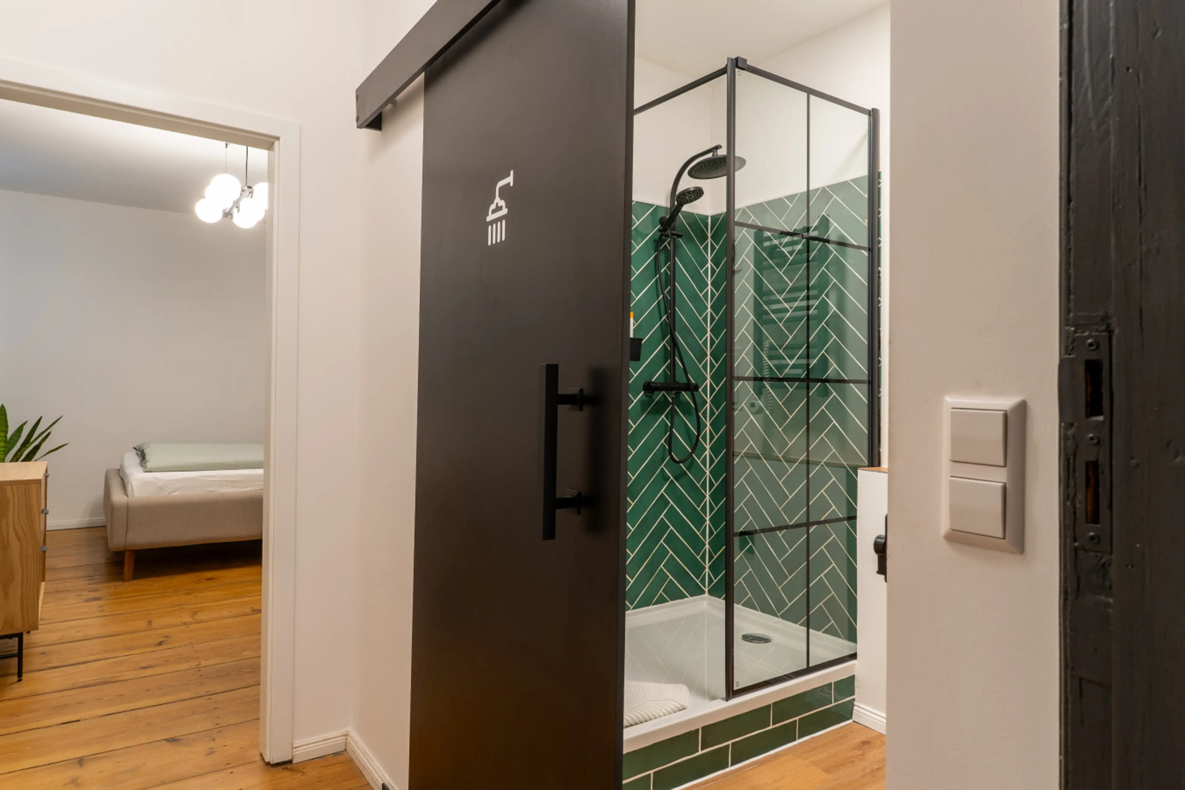 Willkommen in deiner Kreuzberger Wohlfühloase! Erlebe Stil und Komfort in unserem Apartment mit grünen Mosaikfliesen im Badezimmer. Unsere voll ausgestattete Küche bietet alles, was das Gourmetherz begehrt, von der Heißluftfritteuse bis zur Nespresso-Maschine. Entspanne in drei großzügigen Räumen: e...